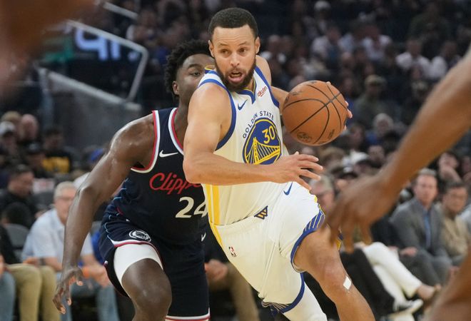 库里20+4+5勇士连丢绝平三分惜败快船 比尔首秀两分球6中6