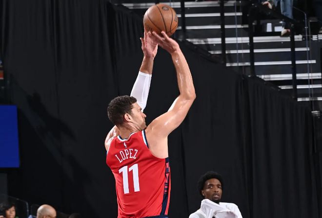 本场比赛中,快船的替补中锋布鲁克-洛佩斯(Brook Lopez)的表现简直是惨不忍睹。洛佩斯全场出场15分48秒,投篮7中3,三分线外4中4,得到了12分2篮板的数据,还有2次失误和2次犯规,正负值则是低到了全场最低的-29。看起来洛佩斯命中了多记三分,在进攻端为球队提供了一定的支持,然而从实际情况来看,他在防守端丢掉的分数要比他在进攻端得到的分数多得多。洛佩斯在防守端在移动速度方面的弱点简直是被对手各种利用,对手可以轻易利用这一点给快船进行针对性打击。洛佩斯在场上时球队的局面一塌糊涂,这也和他在防守端的表现密切相关。不夸张地说,如果洛佩斯没有出场,这场比赛快船可能还真的未必会这样轻易地输掉比赛。