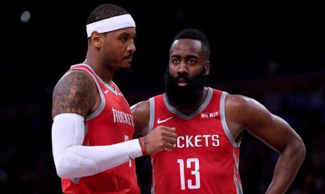哈登在本赛季出战的前22场比赛,他场均能够得到26.5分,且只有5场比赛未能达到20分,而他只要得到21分就能超越安东尼。